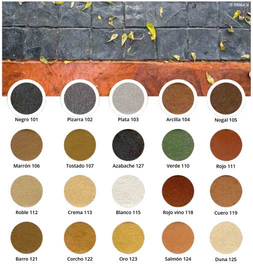 La calidad del color es fundamental para la durabilidad estética de su pavimento. Suministramos Pigmentación de Alto Rendimiento que asegura tonalidades vivas, uniformes y permanentes que resisten eficazmente la decoloración provocada por los rayos UV y las condiciones climáticas. Nuestra gama de colores es versátil y permite desde acabados sobrios y naturales hasta combinaciones audaces, garantizando que el diseño elegido mantenga su impacto visual durante años.